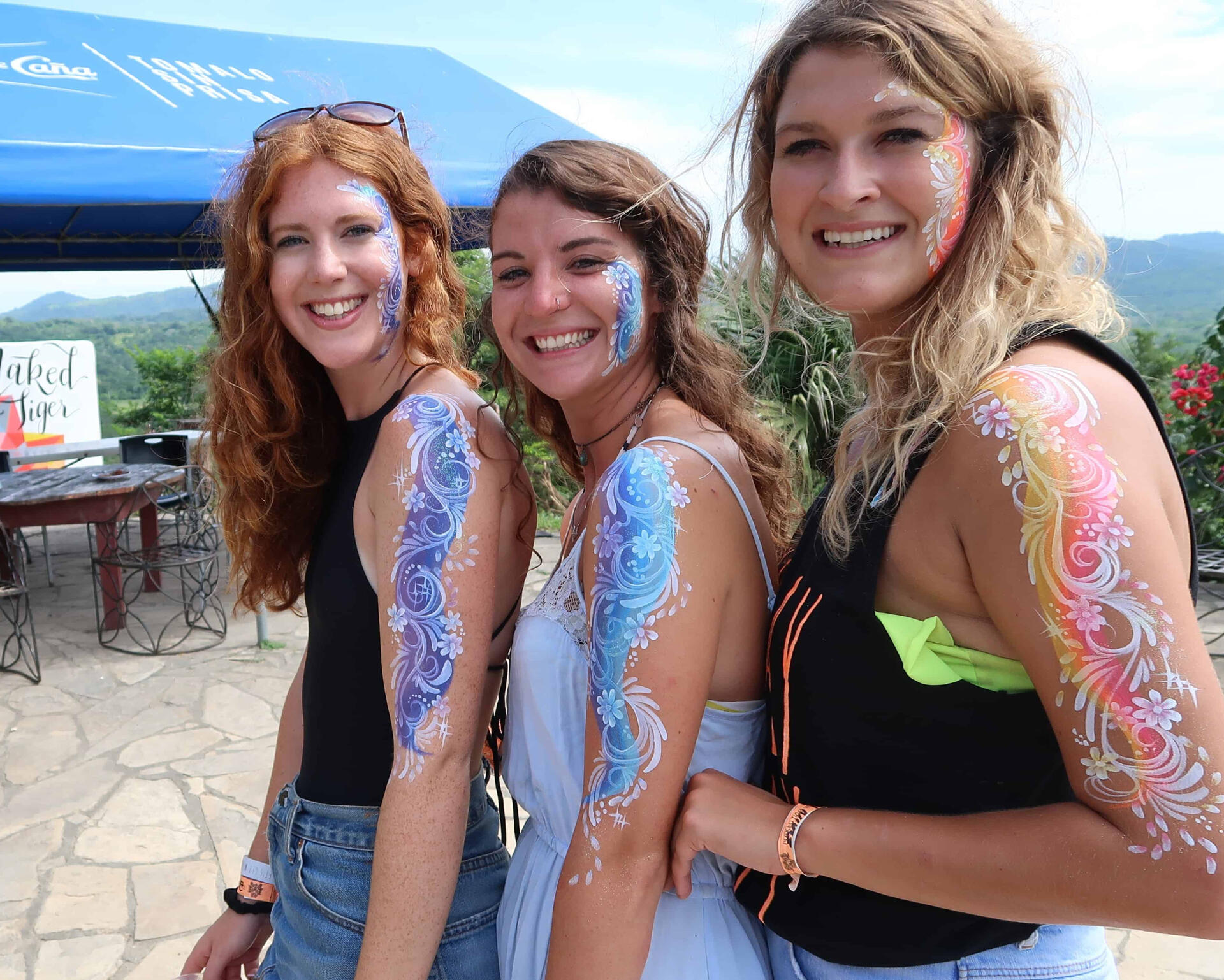 ブラックライトで光るUVボディペイントも人気ですQuick 2-5 min designs at parties or events, including UV body paint that glows under blacklight!